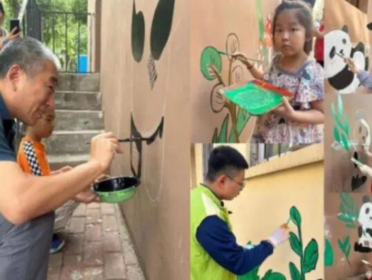 二、執筆揮毫繪彩墻「道路邊的墻面變美了。」利用老舊小區改造的契機,安排轄區居民「大朋友們」和中小學生「小朋友們」展開「小手拉大手」墻繪活動,「大朋友們」帶著「小朋友們」在街頭、在巷尾,你畫一只「大熊貓,」我畫一棵「參天樹」,繪製出了一面面引得行人停步賞識的卡通彩墻。到現在,紅旗街道辦事處共安排為100多面墻體完結彩繪,墻繪內容觸及卡通人物、花鳥蟲魚、詩詞歌賦等諸多方面,讓一面面斑斕的舊墻面變成了「高顏值」、「會說話」的文化墻。在綠樹彩墻下映襯著居民「大朋友們」的聯合同心,匯聚著學生「小朋友們」的單純童心。